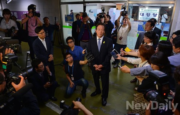 • 제 6회 전국동시지방선거가 시행된 4일 오전 새누리당 정몽준 서울시장 후보와 부인 김영명씨가 서울 동작구 사당동 제6투표소를 방문해 투표를 했다.
