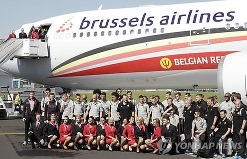 브라질 월드컵 H조 1위, 시드 배정국인 벨기에 축구 대표팀이 브라질에 입국했다.마르크 빌모츠 감독이 이끄는 벨기에 대표팀은 자국 항공사인 브뤼셀 에어라인을 타고 11일 오전(한국시간) 브라질 상파울루에 도착했다.
