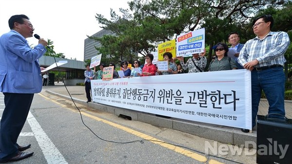 이들은 11일 오후 서울중앙지검 앞에서 기자회견을 열고, 지난 5월 13일과  28일에 실명으로 시국선언을 한 전교조 교사 123명을 공무원의 정치운동 금지 위반과 집단행동의 금지 위반으로 검찰에 고발조치했다.