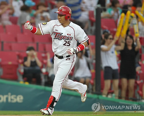 KIA타이거즈 이범호가 짜릿한 투런포를 쏘아올렸다.