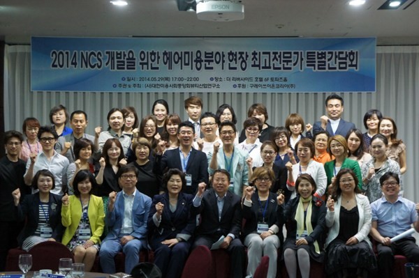 <(사)대한미용사회중앙회(중앙회장 최영희) 부설연구기관인 뷰티산업연구소(소장 송영우)>는 지난 5월 29일 뷰티 살롱 교육 담당, 미용고등학교 교사, 전문대학 미용학과 교수 등 총 70여명이 참석한 가운데 서울시 강남구 신사동 리버사이드호텔에서 [NCS 개발을 위한 헤어미용분야 현장 최고전문가 특별간담회]를 개최했다.이번 간담회는 지난 4월 대한미용사회중앙회가 한국산업인력공단에서 주관하는 국가직무능력표준(NCS, National Competency Standards) 개발(헤어미용, 메이크업, 이용) 기관으로 선정되고, 부설연구기관인 뷰티산업연구소가 전담부서로 지정돼 헤어미용 분야 산업체 현장 최고전문가, 전문대학 미용과 교수 및 특성화고 교사를 대상으로 NCS 개발에 대한 의견과 자문을 수렴해 자격 및 교육훈련에 활용하고자 마련됐다.