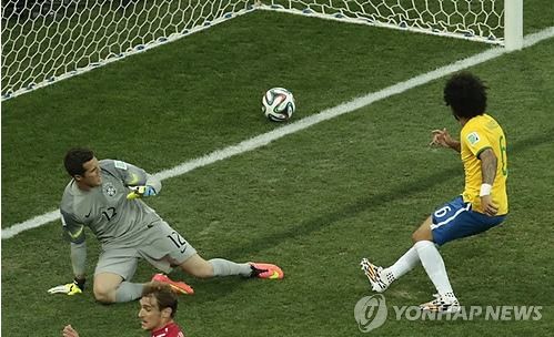 마르셀루는 13일(한국시간) 새벽 브라질 상파울루 아레나 데 상파울루에서 열린 2014년 브라질 월드컵 공식개막전서 전반 11분 자책골을 넣었다.