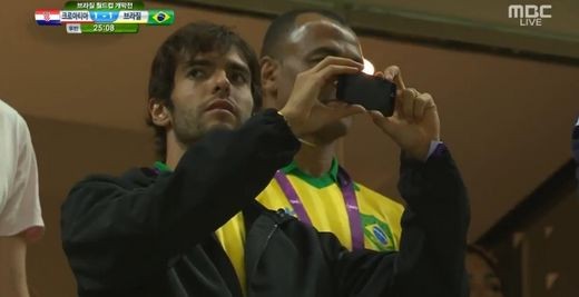 브라질의 꽃미남 선수 히카르도 카카(32·AC밀란)가 월드컵 개막식 관중석에서 포착됐다.브라질 축구대표팀은 13일(이하 한국시간) 브라질 상파울루의 아레나 데 상파울루에서 열린 조별 예선 A조 크로아티아와의 경기에서 네이마르와 오스카의 골로 3-1로 역전승을 거뒀다.이날 수염을 덥수룩하게 기른 카카는 아들 루카(5)와 함께 코린치안스 경기장을 찾아 브라질 크로아티아 개막전을 지켜봤다.공개된 사진 속 카카는 브라질 대표팀의 모습을 휴대폰으로 촬영하고 있다. 카카는 경기 이후 자신의 SNS에 "네이마르의 두 번째 골 장면이 담긴 유명한 영상이 여기 있다"며 네이마르의 페널티킥 성공 장면을 촬영한 영상을 공개했다.브라질 루이스 펠리페 스콜라리 감독은 카카를 월드컵 대표팀에 뽑지 않았다. 이에 대해 '축구황제' 펠레는 "경험 많은 선수가 필요했다. 호비뉴나 카카가 제외된 이유를 모르겠다"며 아쉬움을 토로하기도 했다.AC밀란 소속의 카카는 2013-2014 시즌 리그 30경기에 출전해 7골 4도움을 기록하며 세계 정상급의 기량을 유지하고 있다.[카카 네이마르 촬영, 사진=MBC 중계영상 캡처]