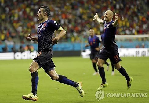 네덜란드는 14일(한국시간) 브라질 사우바도르의 폰치노바 경기장에서 열린 B조 조별리그 1차전에서 각각 2골씩 터뜨린 로빈 판페르시(맨체스터 유나이티드.사진 왼쪽)와 아리언 로번(바이에른 뮌헨.사진 오른쪽)의 활약으로 스페인을 5-1로 물리쳤다.