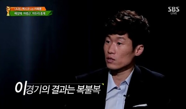 SBS 월드컵 중계 해설에 나선 박지성이 '멕시코 카메룬 전'을 복불복으로 전망했다.박지성은 14일 오전 1시(한국시각) 열린 2014 브라질월드컵 조별리그 A조 멕시코 카메룬의 경기를 앞두고 "멕시코 카메룬전은 복불복과 같다"라는 의견을 밝혔다.이날 박지성은 "카메룬은 잘할 땐 잘하지만 조직력이 안 좋을 땐 안좋다. 기복이 심하다. 쉽게 판단할 수 없는 경기다"고 말했다.또한, 박지성은 맨체스터 유나이티드 시절 팀동료였던 맥시코의 '치차리토' 하비에르 에르난데스에 대해 "치차리토는 자기가 맡은 바를 다 한다"며 "어디에서나 항상 골을 넣을 수 있다. 90분 중에 한 골을 넣을 수 있을 거라 확신한다"고 예상했다.하지만 이날 멕시코는 몸 상태가 좋지 않은 '치차리토' 하비 에르난데스를 대신해 오리베 페랄타(산토스 라구나)를 원톱으로 내세웠다.박지성 해설을 접한 네티즌들은 "박지성 해설 처음부터 틀리네", "치차리토 나왔으면 1골 넣었을텐데..", "박지성 해설 맞는 게 없어", "박지성의 굴욕인 듯", "박지성 해설 제2 박펠레 되나" 등의 반응을 보였다.[박지성 해설, 사진=SBS 영상 캡처]