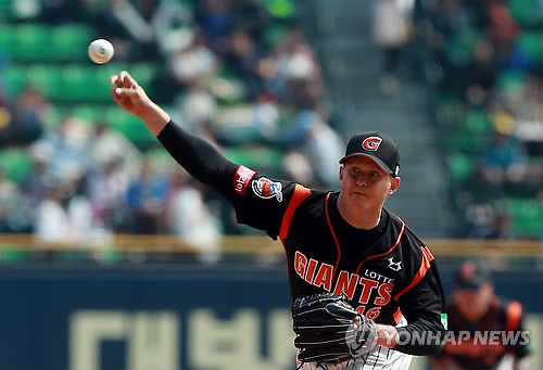 롯데 자이언츠 우완 투수 옥스프링이 KIA 타자 나지완의 머리에 공을 맞혀, 올시즌 '1호 퇴장 선수'가 됐다.