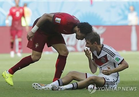 뮐러는 그러나 전반 37분 포르투갈 수비수 페페가 자신에게 다가와 박치기를 한 것은 명백히 페페의 잘못이라고 주장했다.