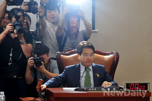심재철 위원장이 17일 오후 여의도 국회에서 열린 세월호 침몰사고의 진상 규명을 위한 국정조사특별위원회의 개의를 선언하며 의사봉을 두드리고 있다.
