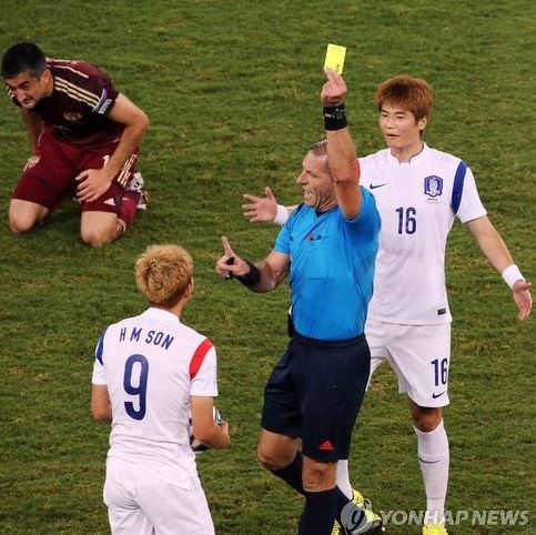 손흥민(22·레버쿠젠)이 러시아전에서 옐로카드를 받은 데 대해 강력한 의문이 제기됐다.