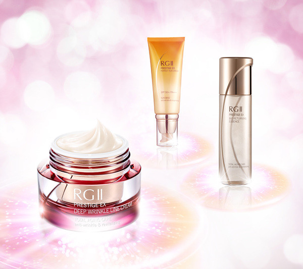 <소망화장품>의 <RGII>는 [RGII 프레스티지 EX] 팔자주름크림과 썬 크림, 퍼스트 에센스를 추가로 출시해 8종으로 라인 업 했다.전 제품 모두 주름개선과 미백 이중기능성 인증을 받은 [RGII 프레스티지 EX] 라인은 피부 미세단위의 네트워크를 강화해주고 피부에 견고함과 탄탄함을 부여하는 [스킨 네트워크 액티베이터], RGII의 컨셉 성분이자 소망화장품만의 주름개선 인증 성분인 [Rg2 50% 함유 홍삼추출물], 미네랄, 아미노산, 펩타이드, 단백질, 인지질 등의 피부 활성 요소가 풍부한 [바이오 워터]의 3STEP의 토탈 에이징 케어로 복합적 피부 고민에 솔루션을 제공한다.대표 제품인 [RGII 프레스티지 EX 팔자주름크림]은 베스트셀러인 [RGII 프리미엄 EX 팔자주름크림]을 업그레이드, Rg2 95% 함유 홍삼 추출물로 성분을 강화하고 소비자가는 그대로 유지하면서 기존 30㎖에서 50㎖로 용량을 늘렸다.가격은 RGII 프레스티지 EX 스킨소프너, 에멀젼 150㎖에 6만 원대, 에센스 45㎖에 15만 원대, 아이크림 30㎖에 13만 원대, 크림 50㎖에 15만 원대, 팔자주름크림 50㎖에 9만8000원대, 퍼펙트 썬크림 60㎖에 4만 5000원대, 바이오 리터닝 에센스 150㎖에 6만 5000원대. -