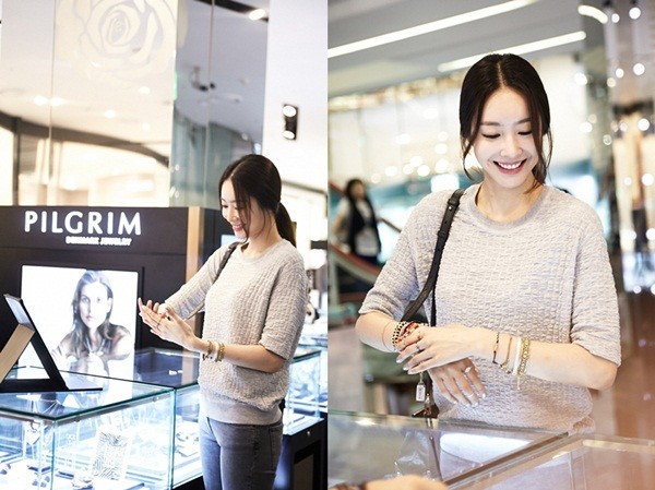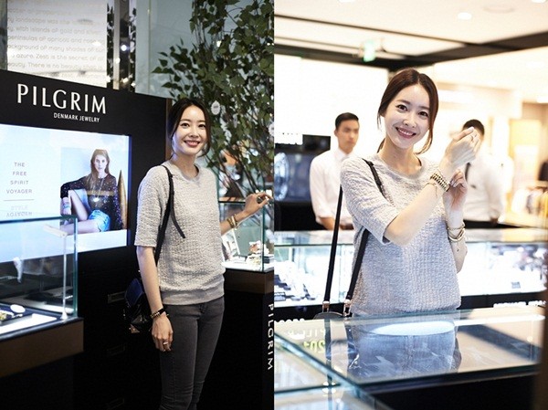 MBC 주말드라마 <호텔킹>에서 차도녀의 모습을 보여주고 있는 배우 왕지혜가 지난 13일, 현대백화점 신촌점의 패션 주얼리 브랜드 <필그림(PILGRIM)> 매장을 방문했다.왕지혜는 수수한 옷차림과 자연스럽게 묶은 헤어스타일의 청순한 미모를 자랑해 눈길을 끌었다.