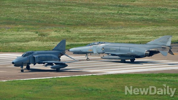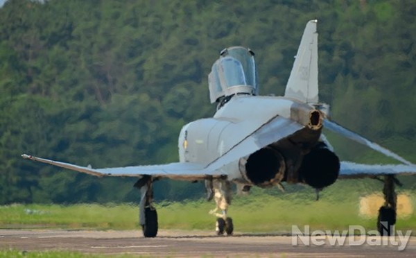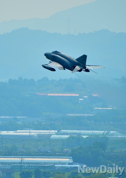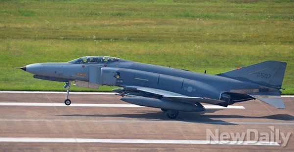 18일 충북 청주 제 17전투비행단에서 F-4E 팬텀 전폭기가 초계임무를 위해 이륙하고 있다.F-4E 전폭기는 지난 1969년 첫 도입 이후 44년이 넘도록 한반도 상공을 지켜며 현재까지도 중요한 항공자산으로 평가 받고 있다.