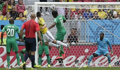 콜롬비아는 20일(한국시간) 브라질 브라질리아의 마네 가힌샤 국립 주경기장에서 열린 대회 조별리그 C조 2차전에서 하메스 로드리게스(AS모나코)와 후안 페르난도 킨테로(포르투)의 연속골을 앞세워 코트디부아르에 2-1 승리를 거뒀다.