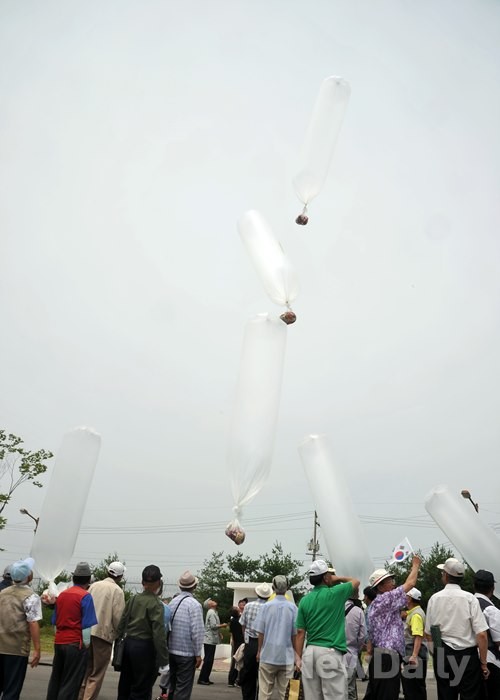 [포토]'굶주린 북한 동포들에게 전달되길' 염원하며 날리는 풍선