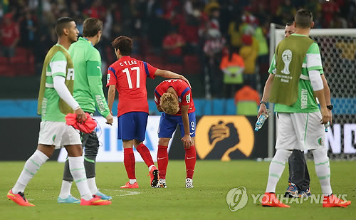 한국은 23일 오전 4시(한국시간) 브라질 포르투 알레그리의 에스타디오 베이라 리오 경기장에서 열린 2014 브라질 월드컵 조별리그 H조 2차전 알제리와의 경기에서 2-4로 패했다.