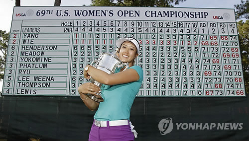 미셸 위(25, 나이키골프)가 우승 소감을 밝혔다.미셸 위는 22일(현지시간) 노스 캐롤라이나주 파인허스트 골프코스 (파70/6,649야드)에서 열린 시즌 두 번째 메이저 대회 제69회 US여자오픈에서 최종 스코어 2언더파 278타로 우승을 차지했다.대회 첫날부터 테이핑 투혼을 발휘하며 단독 2위로 쾌조의 출발을 보인 미셸 위는 2라운드에서 연속 버디를 잡아내며 선두로 올라섰다. 마지막 날에도 10번 홀에서 이글을 기록하고, 17번 홀에서는 7.5m짜리 버디 퍼팅에 성공했다.이에 미셸 위는지난 4월 LPGA 롯데 챔피언십 우승 이후 2개월 만에 다시 우승컵을 들어올렸다. 시즌 첫 메이저 대회인 나비스코 챔피언십 준우승에 이은 메이저 퀸의 등극이다. 특히, 2005년 10월 프로로 전향해 9년 만에 생애 첫 메이저대회 우승컵을 품에 안는 기쁨을 누렸다.우승컵을 거머쥔 미셸 위는 "오늘 경기는 짜릿한 흥분의 도가니였다. 지금 이 순간 정말 행복하다"며 "믿을 수 없는 일이 일어났고, 이런 기회를 받을 수 있는 것에 너무 감사하다"고 전했다.[미셸 위 우승 소감, 사진=연합뉴스]