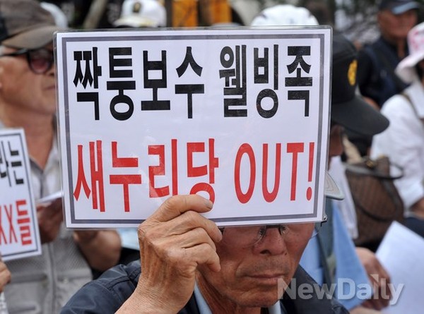 [포토]'짝퉁보수 웰빙족 새누리당 아웃!'피켓 든 애국보수단체 회원