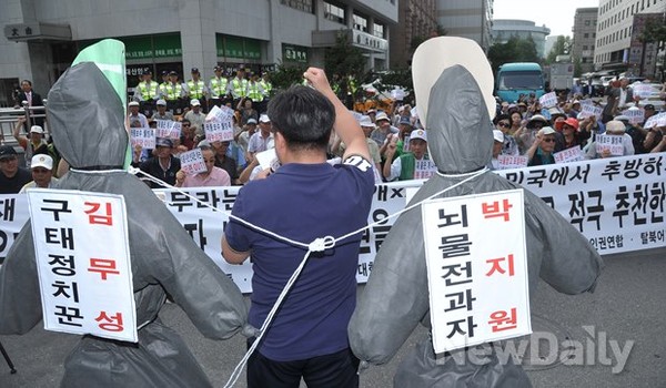[포토]새누리당사 앞 규탄기자회견 하는 애국보수단체