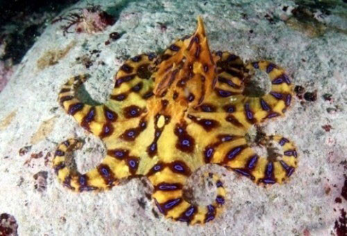 파란고리문어(Hapalochlaena lunulata)는 아열대성 문어는 10㎝ 내외(밤송이 크기)의 작은 크기지만, 복어류가 가지고 있는 테트로도톡신의 맹독을 지닌 종이다.