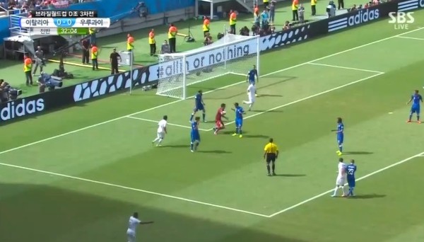이탈리아와 우루과이는 25일 새벽 1시(이하 한국시간) 브라질 나타우 에스타디오 다스 두 나스에서 16강 진출이 걸려 있는 D조 예선을 전반전을 치렀다.
