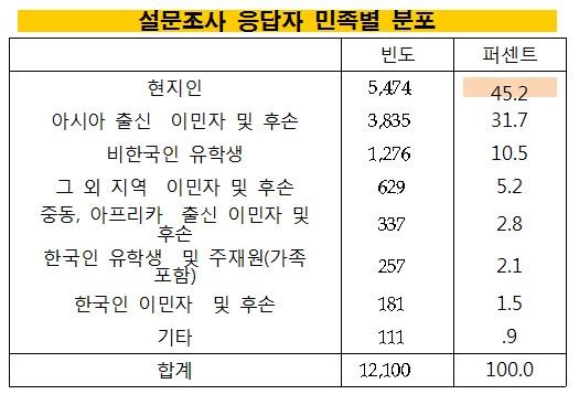 이번 설문조사는 KBS 방송문화연구소가 지난 4월 30일 ~ 5월 26일 KBS World 시청자 119개국 1만2,100명 대상 7개 언어로 온라인 설문조사로 시행했다.(편의 표본추출방법) 지난해 3,962명이 응답한 조사에 비해 참여 인원도 늘었고, 북미와 서유럽의 응답율도 지난해와 비해 비약적으로 늘었음을 알 수 있다. 특히 응답자 중 한국인을 제외한 아시아 출신 이민자(31.7%)와 유학생(10.5%)이 상당 부분을 차지해, 한류의 전파에서 아시아 지역 거주자뿐 아니라 이 지역 출신 이민자들도 상당한 역할을 하고 있음이 드러났다.
