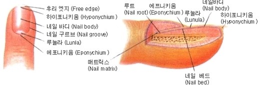 손톱은 다량의 아미노산과 시스테인이 포함되어 있고 일반적으로 12~18%정도의 수분을 함유하고 있다.