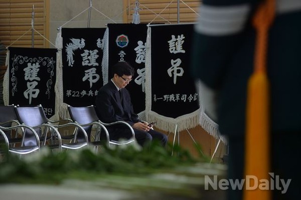 25일 오후 22사단 GOP(일반전초) 총기난사 사건으로 숨진 장병들이 안치된 경기도 성남시 국군수도병원 내 합동분양소에 한 유가족이 빈소를 지키고 있다.