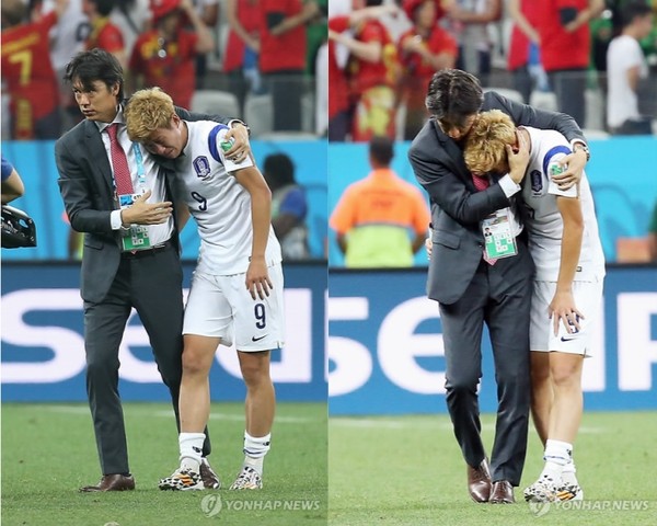 축구대표팀 막내 손흥민(22·레버쿠젠)이 눈물을 펑펑 흘렸다.홍명보 감독이 이끄는 대한민국 축구 대표팀은 27일 새벽 5시(이하 한국시간) 브라질 상파울루, 아레나 데 상파울루에서 열린 2014 브라질 월드컵 H조 예선 벨기에와의 경기에서 0-1로 패하며 16강 진출에 실패했다.이날 경기 휘슬이 울리자 손흥민은 흐르는 눈물을 감추지 못하며 오열해 안타까움을 자아냈다. 자신의 첫 월드컵 무대에서 3경기 모두 선발 출전해 고군분투했지만 벨기에에게 분패하며 기적 같은 16강행을 이뤄내지 못했다.손흥민은 붇받치는 감정에 눈물을 쏟았고, 홍명보 감독과 선수들이 따뜻하게 안아줬지지만, 눈물은 멈추지 않았다. 경기 후 가진 인터뷰에서 손흥민은 "상당히 아쉽다. 막내로서 제 몫을 못해 형들과 감독님께 너무 미안하고 죄송하다"고 밝혔다.이어 "국민들이 새벽에 응원해주셨는데 우리가 할 수 있는 모습을 보여주지 못해 죄송스럽고 그 점이 가슴 아프다"며 "월드컵에서 너무 강한 선수들 많다는걸 또 한 번 느꼈다. 앞으로 기회는 많을 것이라고 생각하고 더 열심히 준비해 멋있는 모습으로 찾아뵙겠다"고 전했다.'대한민국 벨기에' 손흥민 눈물을 접한 네티즌들은 "대한민국 벨기에 아쉽지만 4년 후를 기약하자", "손흥민 눈물 보고 나도 울었다", "대한민국 벨기에 질책보다는 격려를 더 많이 해주자", "손흥민 잘 싸웠다!", "대한민국 벨기에전 허무하게 월드컵이 끝났어" 등의 반응을 보였다.['대한민국 벨기에' 손흥민 눈물, 사진=연합뉴스]