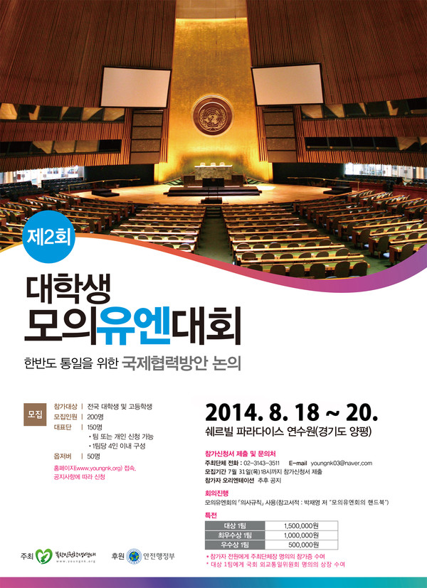 오는 8월 18일부터 20일까지 경기도 양평 쉐르빌 파라다이스 연수원에서 열리는 이번 모의대회는 북한인권학생연대가 주최하고 안전행정부가 후원한다.