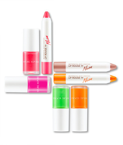 ▲ 네이처리퍼블릭 [립루즈 네온] [네온 네일]<네이처리퍼블릭(대표 정운호)>은 여름을 맞아 네온 컬러 메이크업 [보테니컬 에코크레용 립루즈 네온] 3종과 [컬러 앤 네이처 네온 네일] 4종을 출시했다.이번 여름 색조 제품은 포인트 메이크업만으로도 여름철 휴가지에서 돋보일 수 있도록 리얼 형광 컬러를 담은 립루즈와 네일 제품으로 구성됐으며, 한정판으로 선보인다.[보테니컬 에코크레용 립루즈 네온]은 조명에 발광하는 신개념 립스틱이다. 클럽과 노래방 등 조명 아래서 야광으로 빛나 입술뿐 아니라 바디, 얼굴 등에도 하트 등 모양을 그려 재미있게 연출할 수 있다.[컬러 앤 네이처 네온 네일]은 낮에는 유리알처럼 선명한 색상으로, 밤에는 클럽 조명 아래 야광 컬러로 변한다.가격은 보테니컬 에코크레용 립루즈 네온 3종 2.5g에 6000원대, 컬러 앤 네이처 네온 네일 4종 8㎖에 3000원대. -