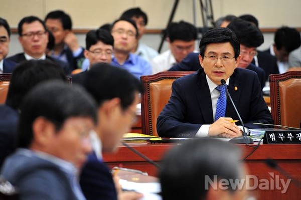 [황교안] 법무부 장관이 3일 오전 여의도 국회에서 열린 법제사법위원회 전체회의에서 의원들의 질의에 답하고 있다.