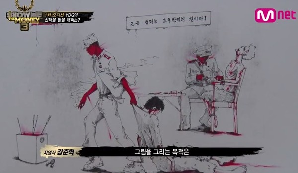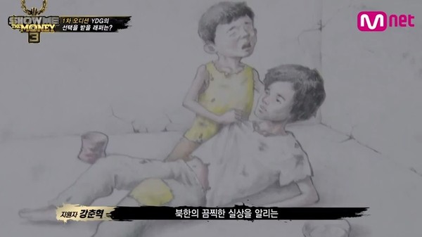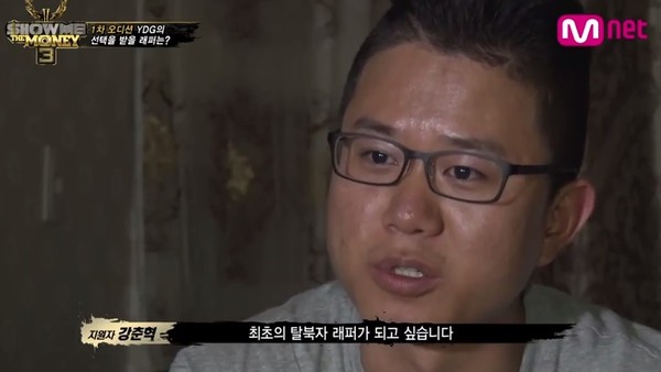 음악방송 'Mnet'의 서바이벌 프로그램 '쇼미더머니(Show Me The Money)3'에 출연한 탈북자 강춘혁은 지난 3일 방송에서 북한을 비판하는 랩과 북한의 실상을 그린 그림들을 공개해 주목을 받았다.
