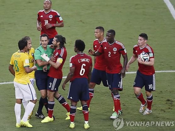 브라질과 콜롬비아의 이날 경기에서는 두 선수단을 통틀어 무려 54차례의 반칙이 쏟아졌지만 옐로카드는 4장밖에 나오지 않았다.