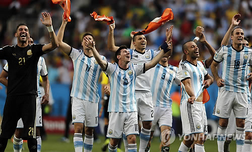 아르헨티나가 벨기에를 꺾고 24년 만에 4강에 진출했다.아르헨티나는 6일(한국시간) 브라질 브라질리아의 에스타디오 나시오날 데 브라질리아에서 열린 2014 브라질월드컵 8강 벨기에와의 경기에서 이과인의 선제 결승골을 앞세워 1-0으로 승리했다.이날 아르헨티나는 전반 8분 곤살로 이과인(나폴리)이 골문 왼쪽 구석을 노리는 기습 중거리 슈팅으로 선제골을 뽑아냈고, 이 골을 끝까지 지키며 4강행 티켓을 거머쥐었다. 이과인은 브라질 월드컵 첫 골을 기록하는 기쁨을 누렸다.이로써 아르헨티나는 1990년 이탈리아 월드컵 이후 24년 만에 4강에 오르는 쾌거를 달성했으며, 통산 세번째 우승을 향한 도전을 이어갔다.하지만 전반 33분 아르헨티나 공격을 이끌던 디 마리아가 허벅지 부상을 호소하며 교체아웃되면서 4강 출전이 불투명해졌다.한편, 아르헨티나는 네덜란드와 코스타리카전의 승자와 오는 10일 결승 진출을 다툰다.[아르헨티나 벨기에, 사진=연합뉴스]