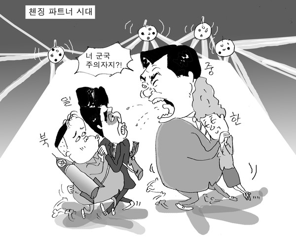 만평 한국-중국, 북한-일본...어색한 입맞춤