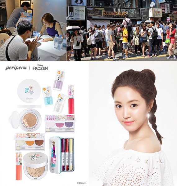 귀엽고 사랑스러운 겨울왕국의 주인공들을 만나볼 수 있는 페리페라 신제품 [겨울왕국 콜라보레이션 컬렉션]은 압구정, 가로수길, 홍대 등 클럽 클리오 매장과 온라인 직영몰, 전국 올리브영, 왓슨스에서 만나 볼 수 있다.[사진 = 페리페라, 러브즈뷰티 DB]