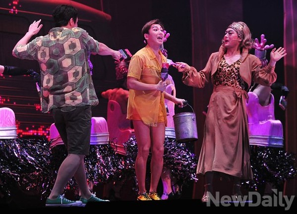 이날 [프리실라] 프레스콜에는 배우 조성하, 고영빈, 김다현, 마이클리, 이지훈, 이주광, 조권, 김호영, 유승엽, 장대웅이 출연해 하이트라트 장면을 연출했다.
