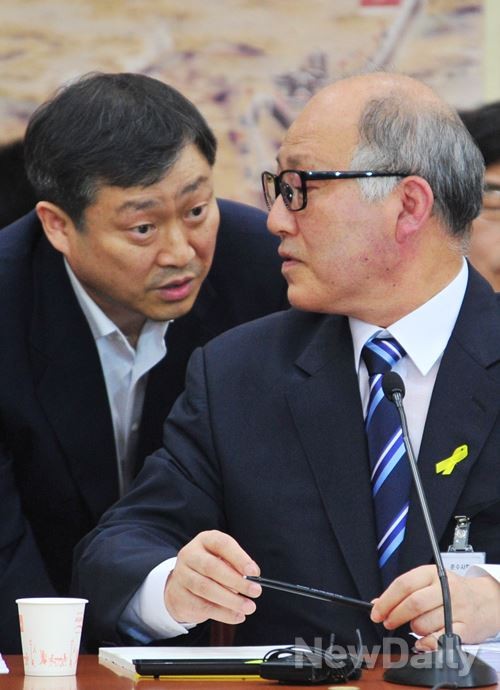 [김명수] 사회부총리겸 교육부장관 후보자가 9일 오전 여의도 국회 교육문화체육관광위원회 인사청문회에서 보좌진과 대화를 나누고 있다.