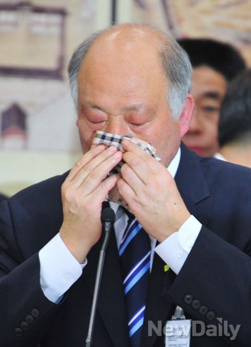 [김명수] 사회부총리겸 교육부장관 후보자가 9일 오전 여의도 국회 교육문화체육관광위원회 인사청문회에서 땀을 닦고 있다.