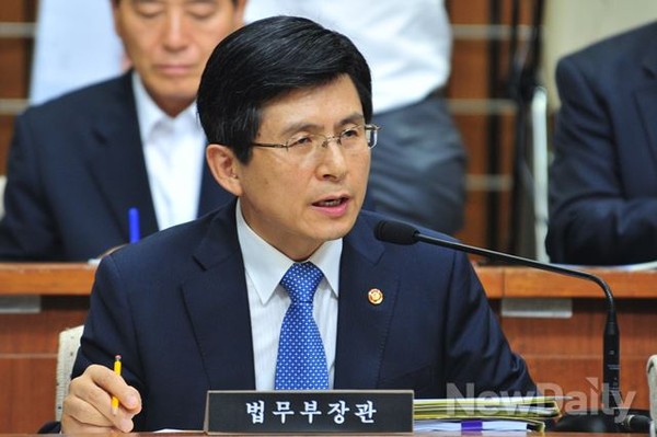 [황교안] 법무부 장관이 9일 오후 국회에서 열린 [세월호침몰사고 진상규명을 위한 국정조사특별위원회]에서 의원들의 질의에 답하고 있다.