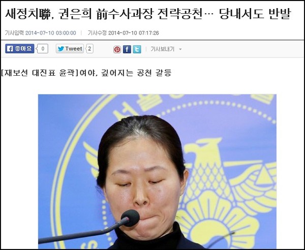 노컷뉴스는 한 중견언론인의 “권은희를 공천함으로써 새정치연합은