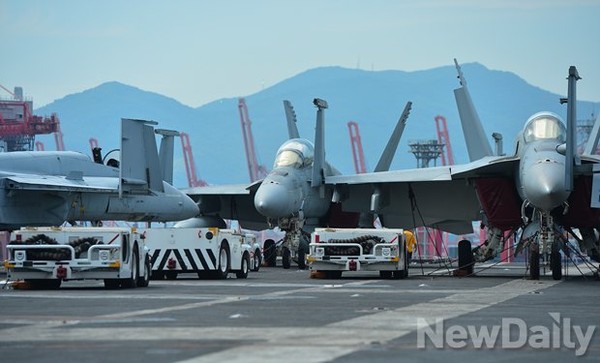 미 해군 항공모함인 조지워싱턴호가 부산에 입항했다.