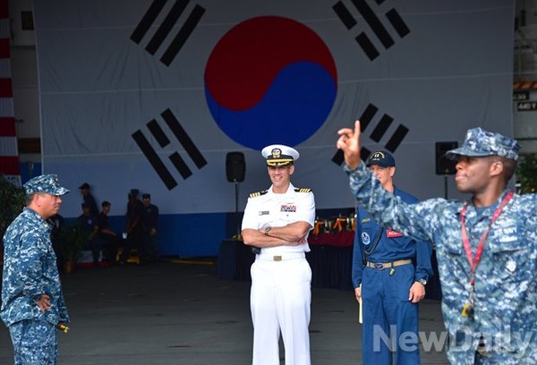 한미일은 작년 10월에도 조지워싱턴호가 참여하는 수색·구조 훈련을 남해 상에서 실시한 바 있다. -