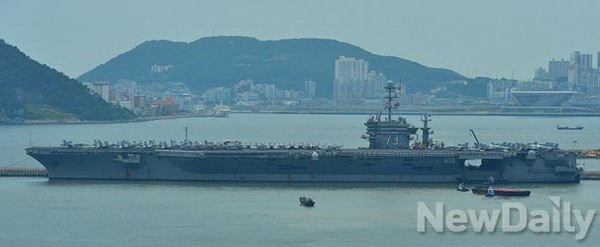 미 해군 항공모함인 조지워싱턴호가 부산에 입항했다.