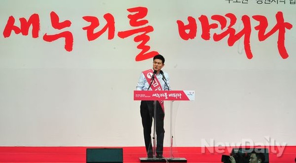 [포토]전대 마지막 합동연설회 나선 새누리당 김태호 의원