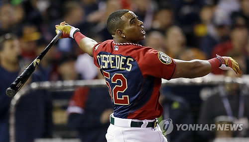 미국 메이저리그 오클랜드 애슬레틱스 소속의 쿠바출신 요에니스 세스페데스가 7월 15일(한국시간) 미국 미네소타주 미니애폴리스 타겟필드에서 열린 '2014 메이저리그 올스타전 질레트 홈런더비'에서 우승을 차지했다.