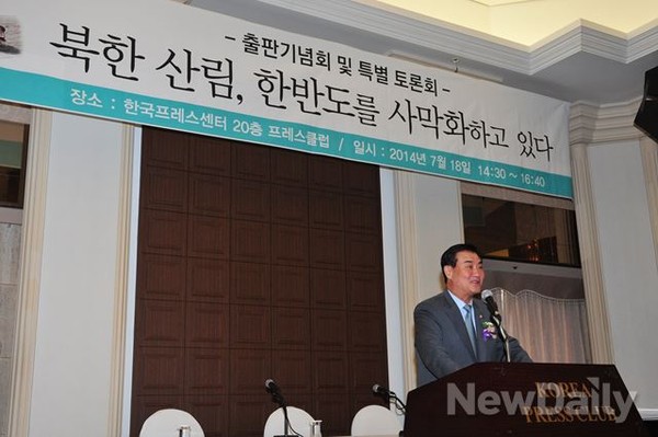 • [김성일] 서울대 교수와 제자 [이동호] 씨가 18일 오후 서울 종로구 프레스센터에서 [북한 산림, 한반도를 사막화하고 있다]의 출판기념회를 열었다.