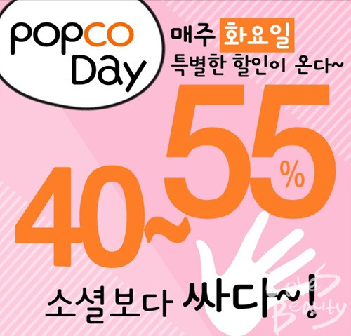 두 번째 이벤트는 [팝코Day 특별 할인 이벤트]로 매주 화요일을 팝코Day로 정하여 화요일 당일 오전 9시~오후 12시 사이에 팝코 공식 홈페이지에 방문하면 신제품을 40~55% 할인된 금액으로 만나볼 수 있다.팝코의 마케팅을 담당하고 있는 오경희 과장은 “이번에 진행하는 팝코Day 할인 이벤트는 소셜커머스 보다 저렴한 가격으로 파격 할인율을 자랑한다”며 “고객들의 많은 참여가 기대된다”고 말했다.이벤트 내용은 팝코 공식 홈페이지를 통해 확인할 수 있다.[사진 = 팝코]