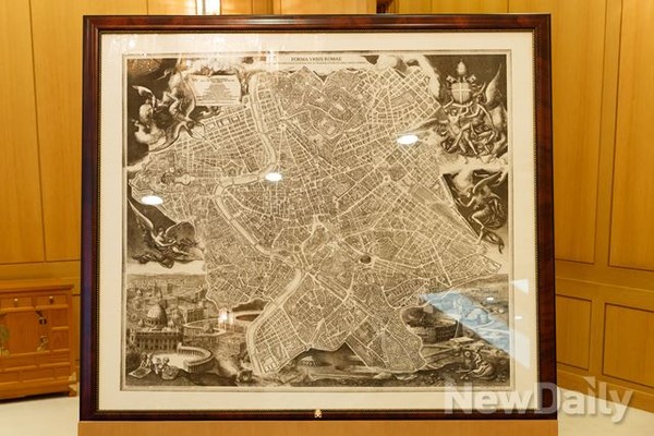 프란치스코 교황이 14일 오후 청와대를 방문해 박근혜 대통령에게 2000년 대희년((大禧年)을 기념 로마대지도를 선물했다.