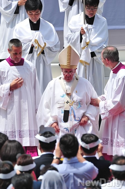 프란치스코 교황이 [성모승천대축일미사]를 15일 오전 10시 45분께 대전월드컵경기장에서 집전 했다. 이 미사는 교황 한국방문 후 처음으로 대중과 봉헌하는 미사이다.